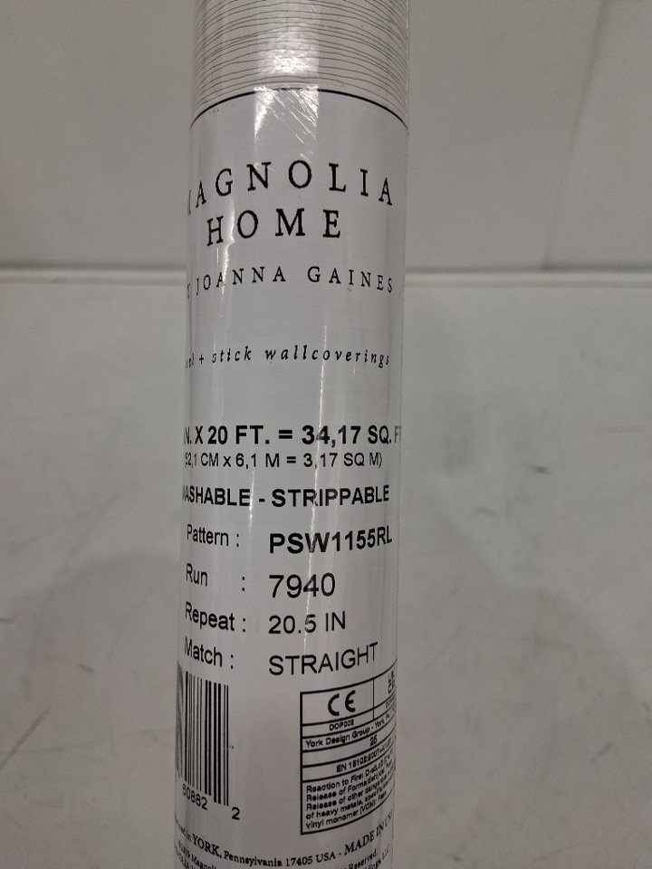 magnolia home common thread peel-and-stick wallpaper - 20.5" x 20ft - white/light grey (model: PSW1155RL)