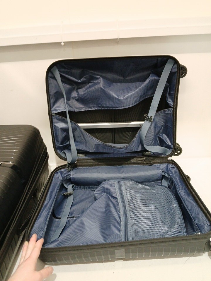 cases and wheels have light signs of use overall. Dust on wheels and markings on cases. Missing keys.