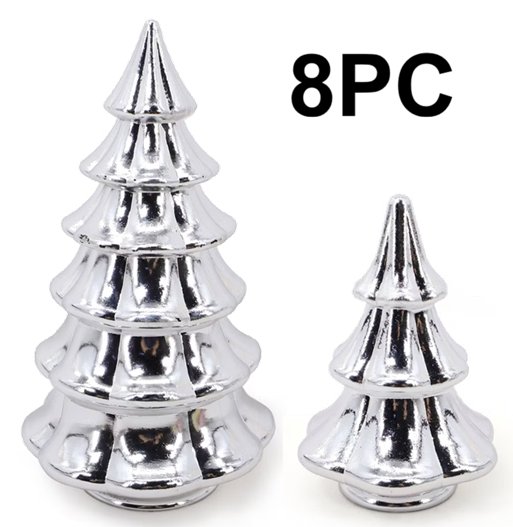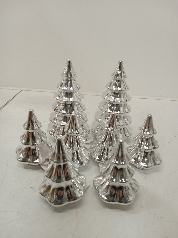 8PC Bullseye's Playground Metallic Glass Trees - 7"/4" - SILVER