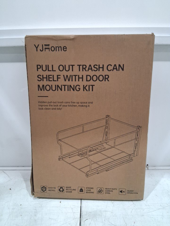 YJHOME Pull Out Trash Can Under Cabinet with Soft-Close Slides Garbage Can Not Included Cabinet Pull Out Kit with Door Mounting - 17" x 24" - DOUBLE - Grey (model: PM376)