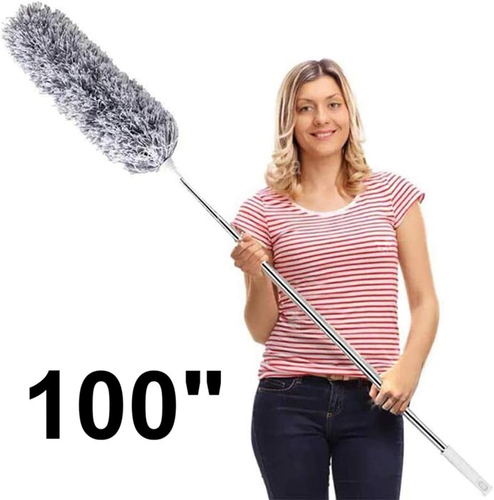 DELUX Microfiber Feather Duster - 100" - Silver/Gray - (Model: B07XGJQPLJ)