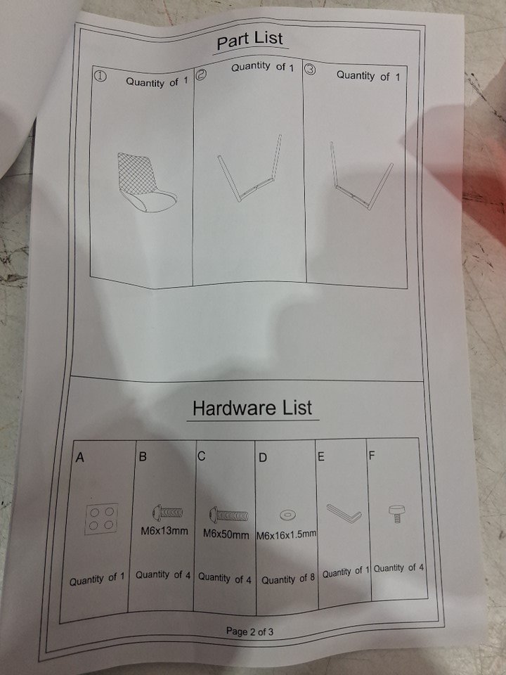 Please note that the one of the sets has been previously installed. There are installation and scratch marks on the seat and base stand due to previous use. May require additional generic hardware to install the product. (Please see photos)