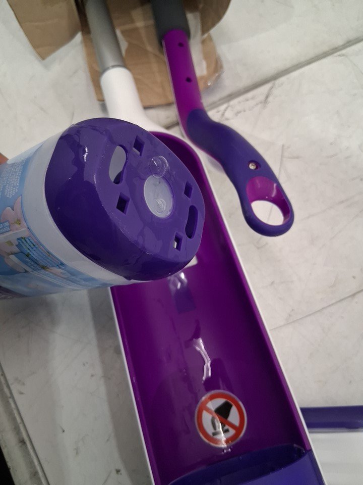 Some cleaning solution on item from being clipped to mop holder, doesn't appear to be used.