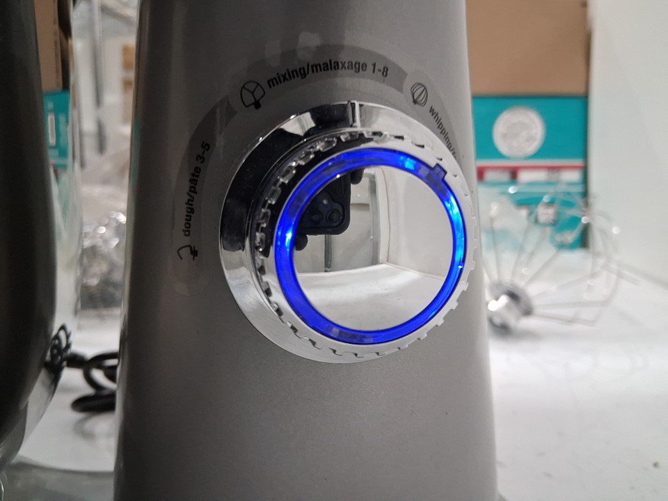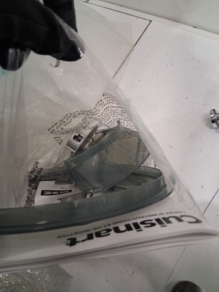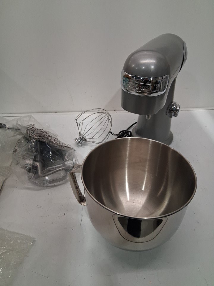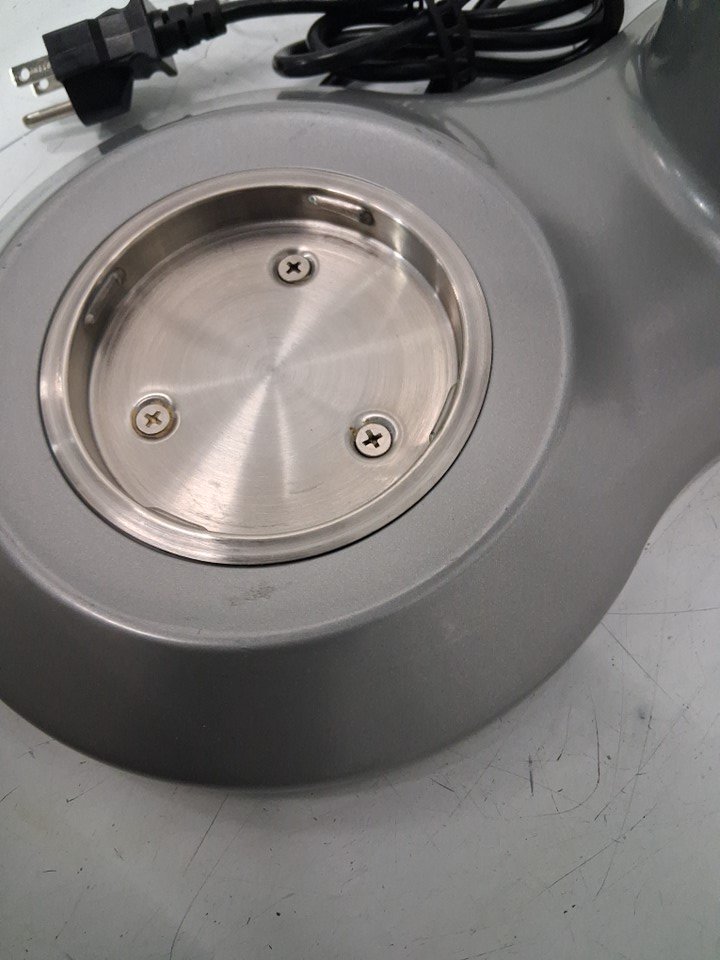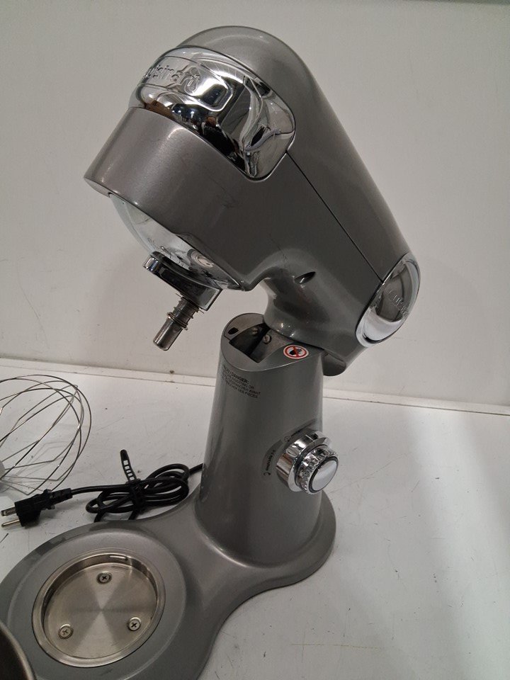 item has some scuffs/scratches from prior use- there are some marks in the bowl as well. Item has a strange vibration/noise when running but operates normally.