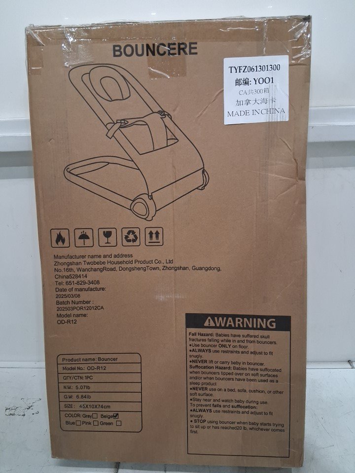 Fodoss Portable baby Bouncer Seat - 28" x 17.7" x 20"- 20lb cap - Beige/wood (Model: OD-R12)