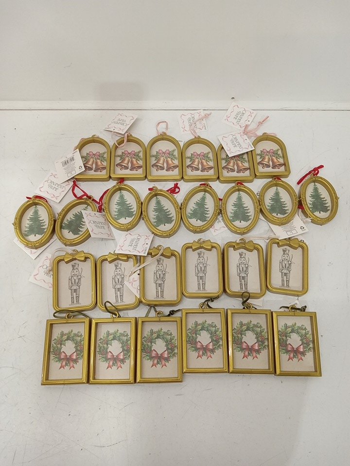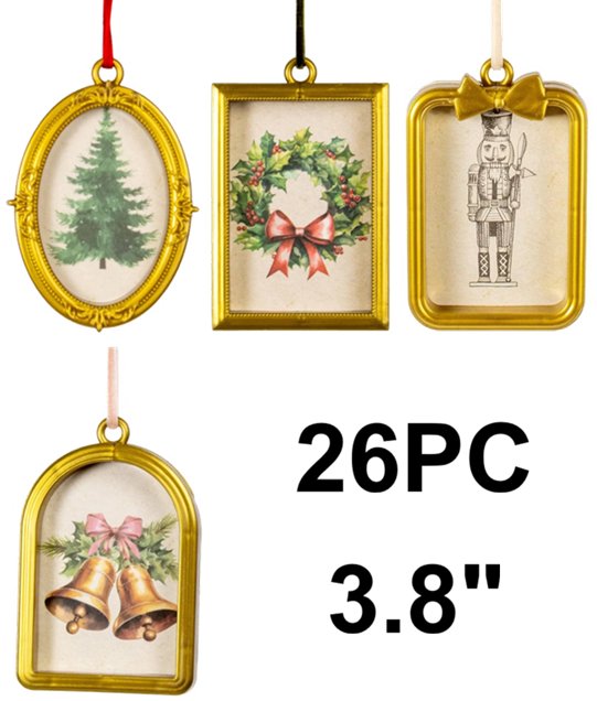 26PC Bullseye's Playground Frame Ornaments - 3.8" - Tree/Nutcracker/Bells/Wreath