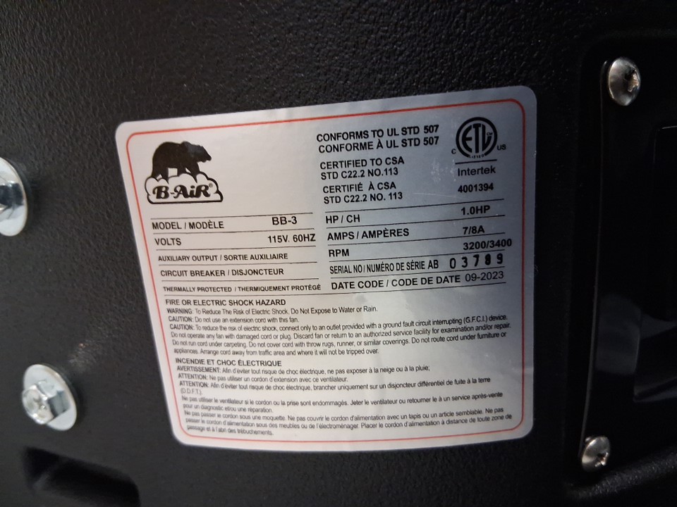 B-air inflatable advertisement blower - 115V/1.0HP/7-8AMP - black (model: BB-3)
