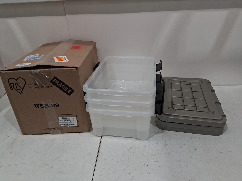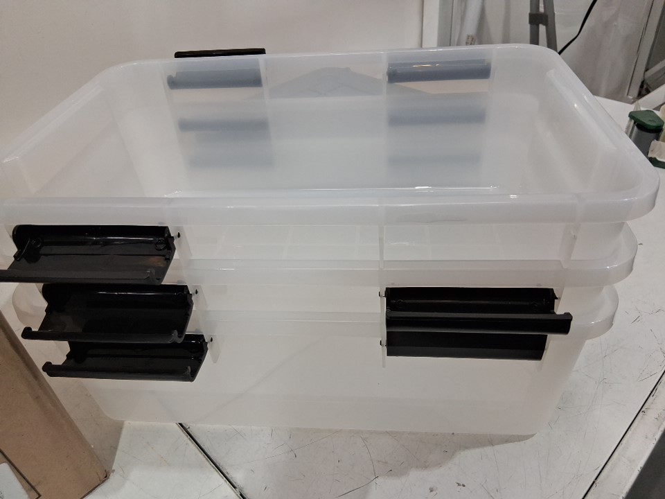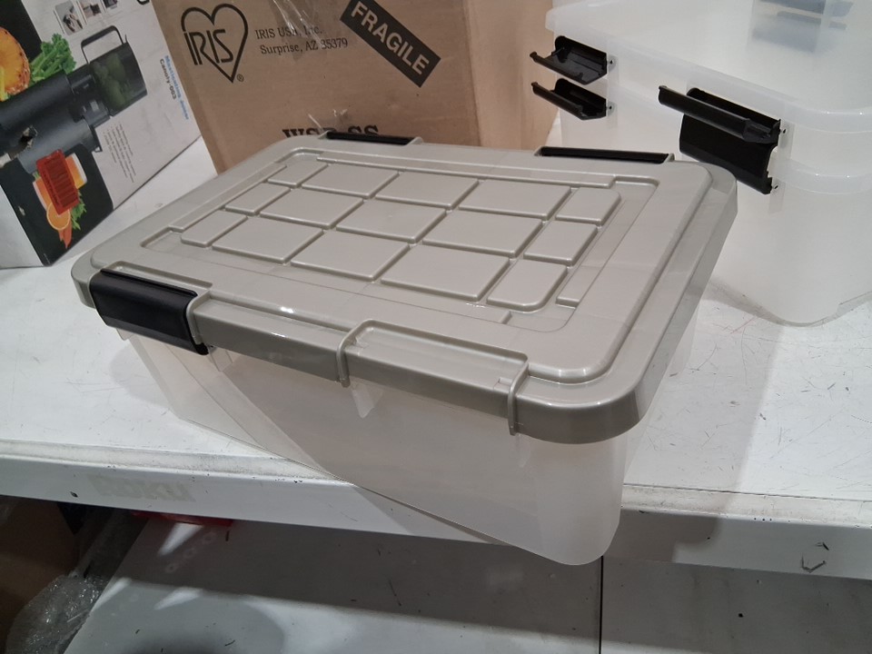please note one of the latches on one of the storage bins is missing. it can still function. see photos.