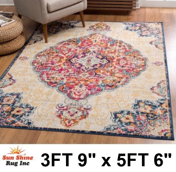 SunShine Rugs Splash Collection Medallion Print Area Rug - 3FT 9" x 5ft 6" - CREAM (Style: 2899)
