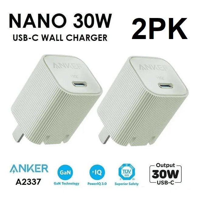2PK Anker Nano USB-C Fast WALL Foldable Charger Block - 30W (MODEL: A2337)