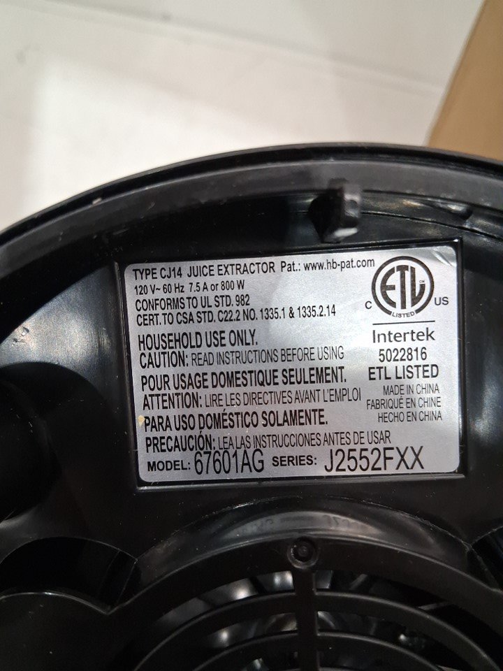 please note that it is missing the juice container and found signs of previous use such as water marks on it (see photos).