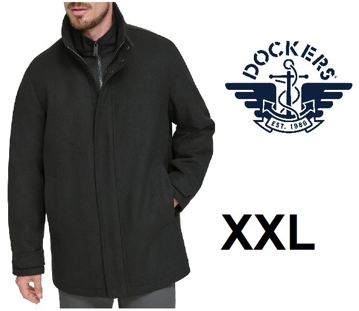 men's dockers fill zip wool melton double pocket duffle coat - xxl - black (style: dm3rp457)