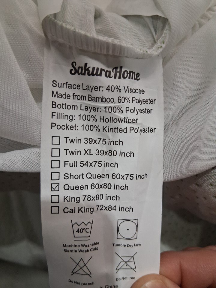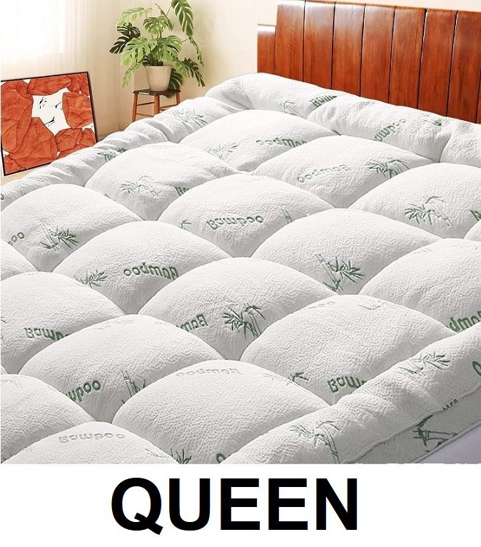 SAKURAHOME Bamboo Mattress Topper - queen (60" x 80") - WHITE/green