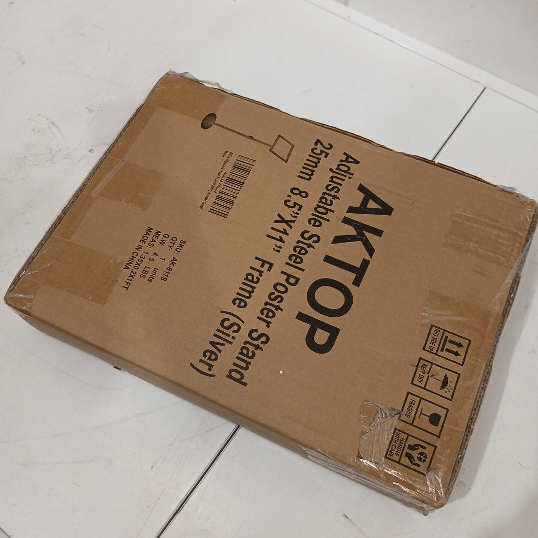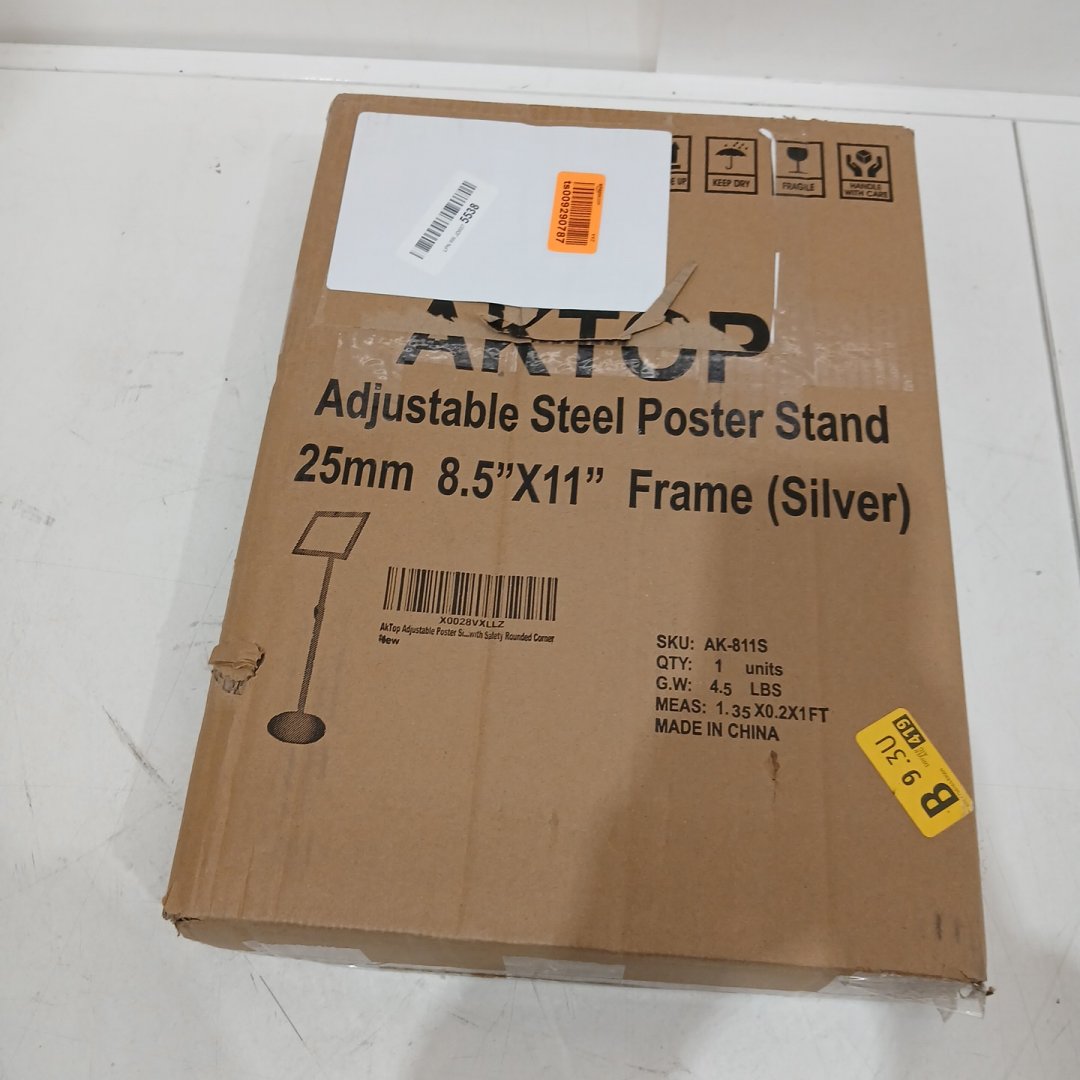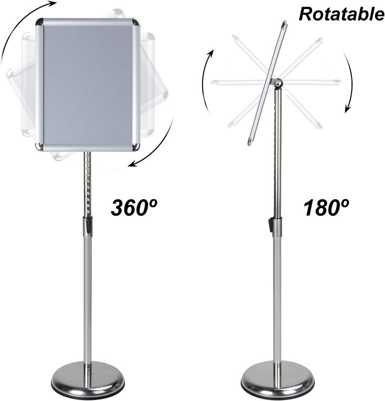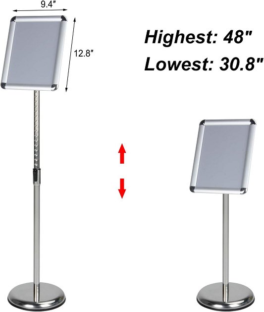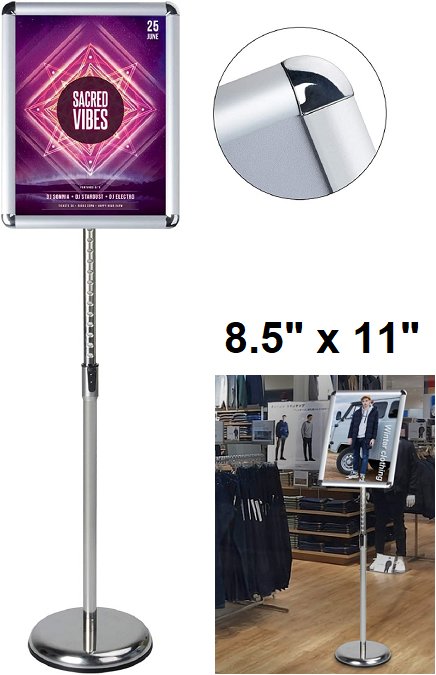 AkTop Adjustable Poster Sign Stand, Pedestal Floor Standing Sign Holder, Snap-Open Aluminum Frame - 8.5" x 11" - Silver (Model: AK-811S)