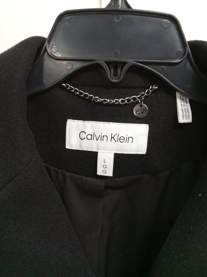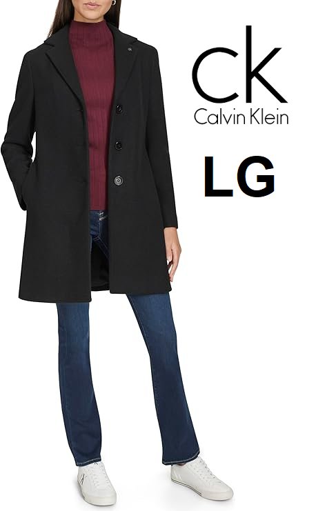 women's clavin klein classic button front faux wool coat - large - black (style: cw559009)