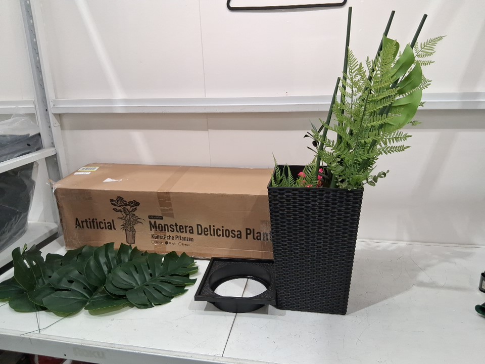 INDOOR/OUTDOOR ARTIFICIAL MONSTERA DELICIOSA PLANT WITH BLACK PLANTER - 4FT