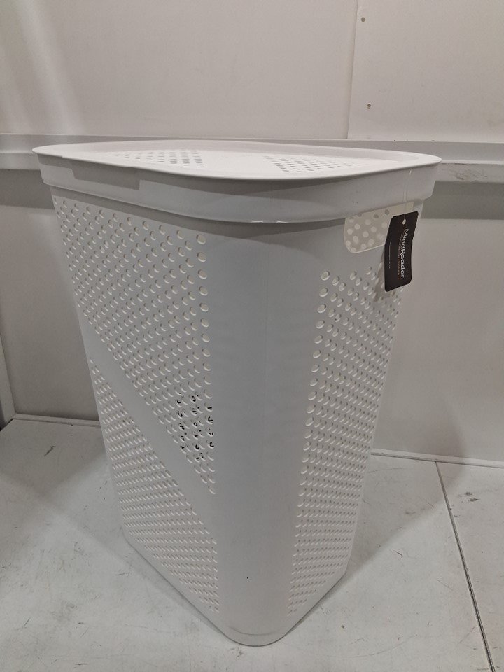 Mind Reader Slim Laundry Hamper WITH Cut Out Handles AND Attached Hinged Lid - 60L - White (MODEL: HBIN60-WHT)