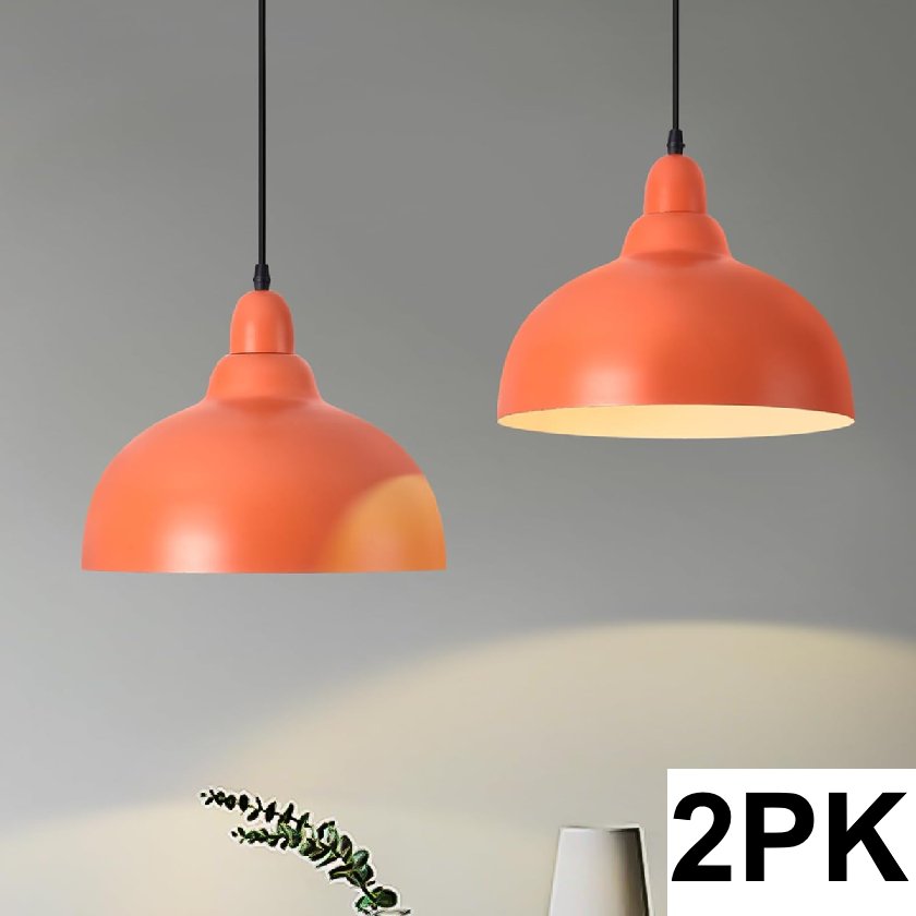 2PK Ziqqeelam Mid Century Modern Dome Pendant Light Fixtures - 12" Each - Orange - (Model: PD005-OR)