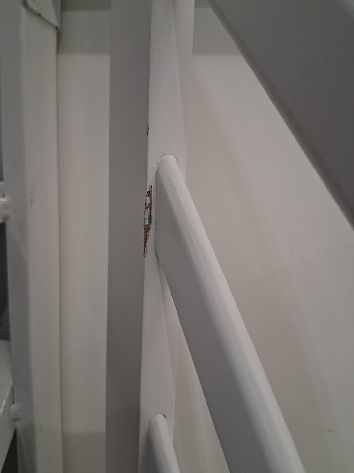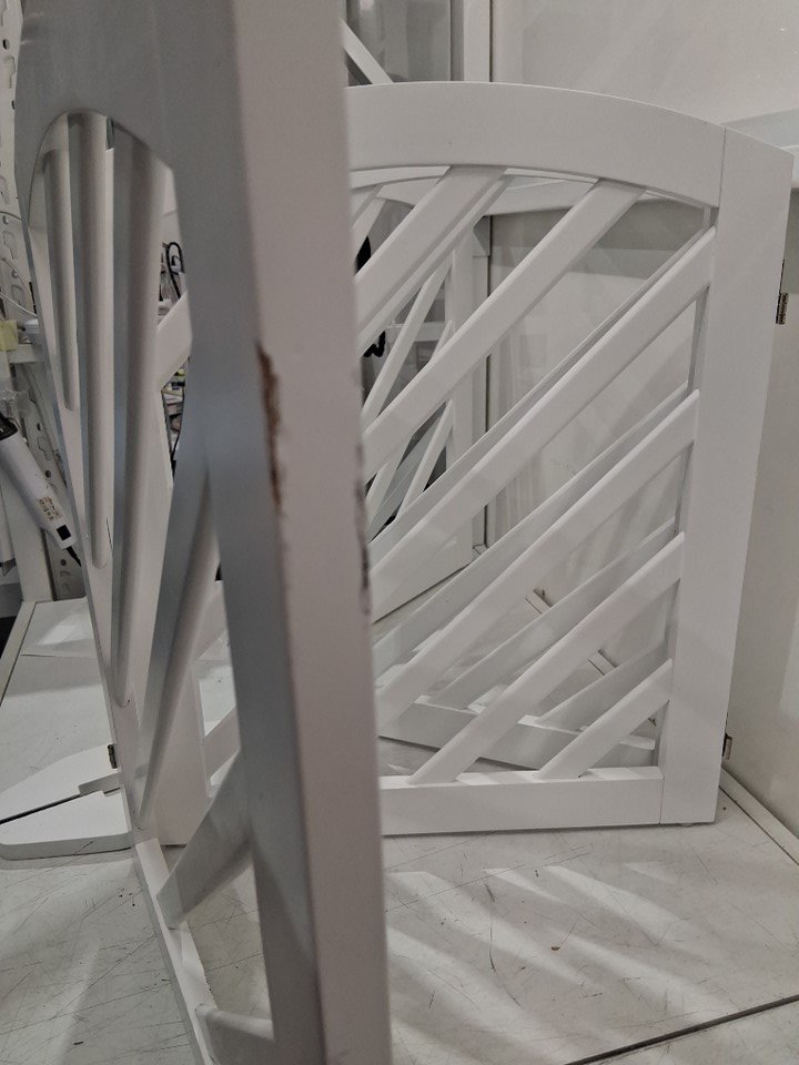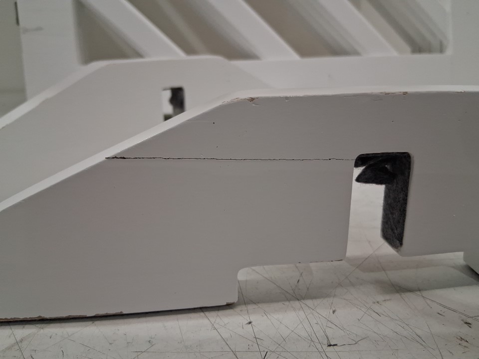 Has a few minor scuff/paint chips marks & dirt & one of the legs has a crack - see photos