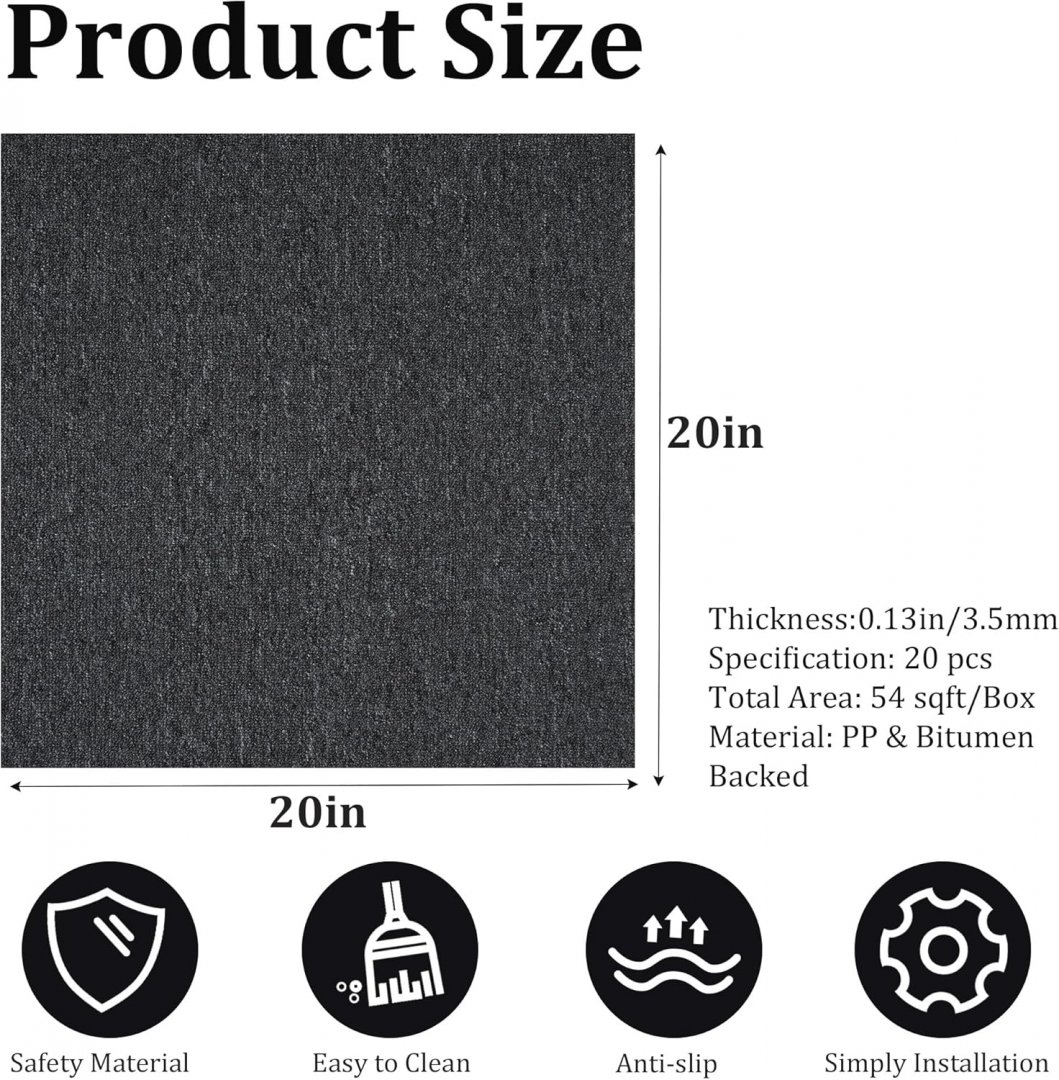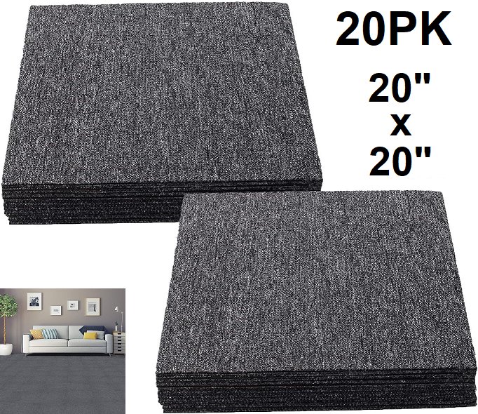20pk ybaymy carpet floor tiles - 20" x 20" - dark grey (model: ‎10-0079-1)