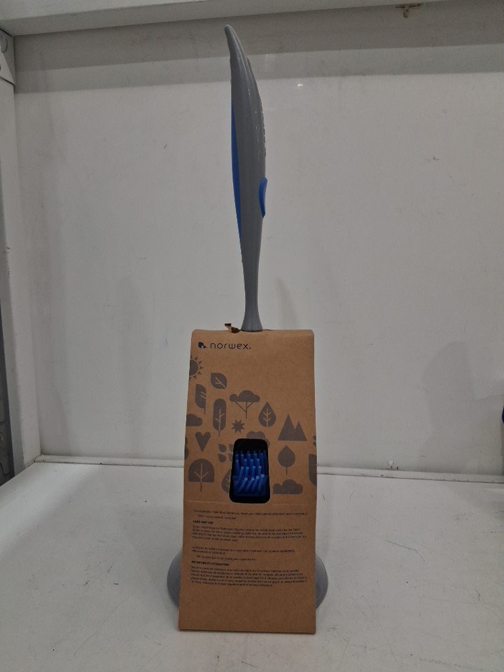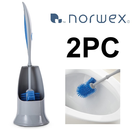 2PC Norwex Ergonomic Toilet Brush and Holder - 17" x 5" - Blue/White (Model: 357009)