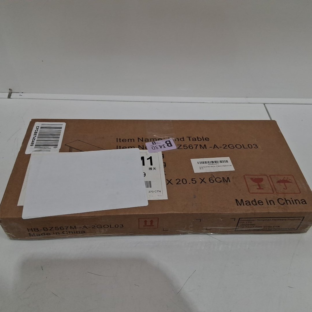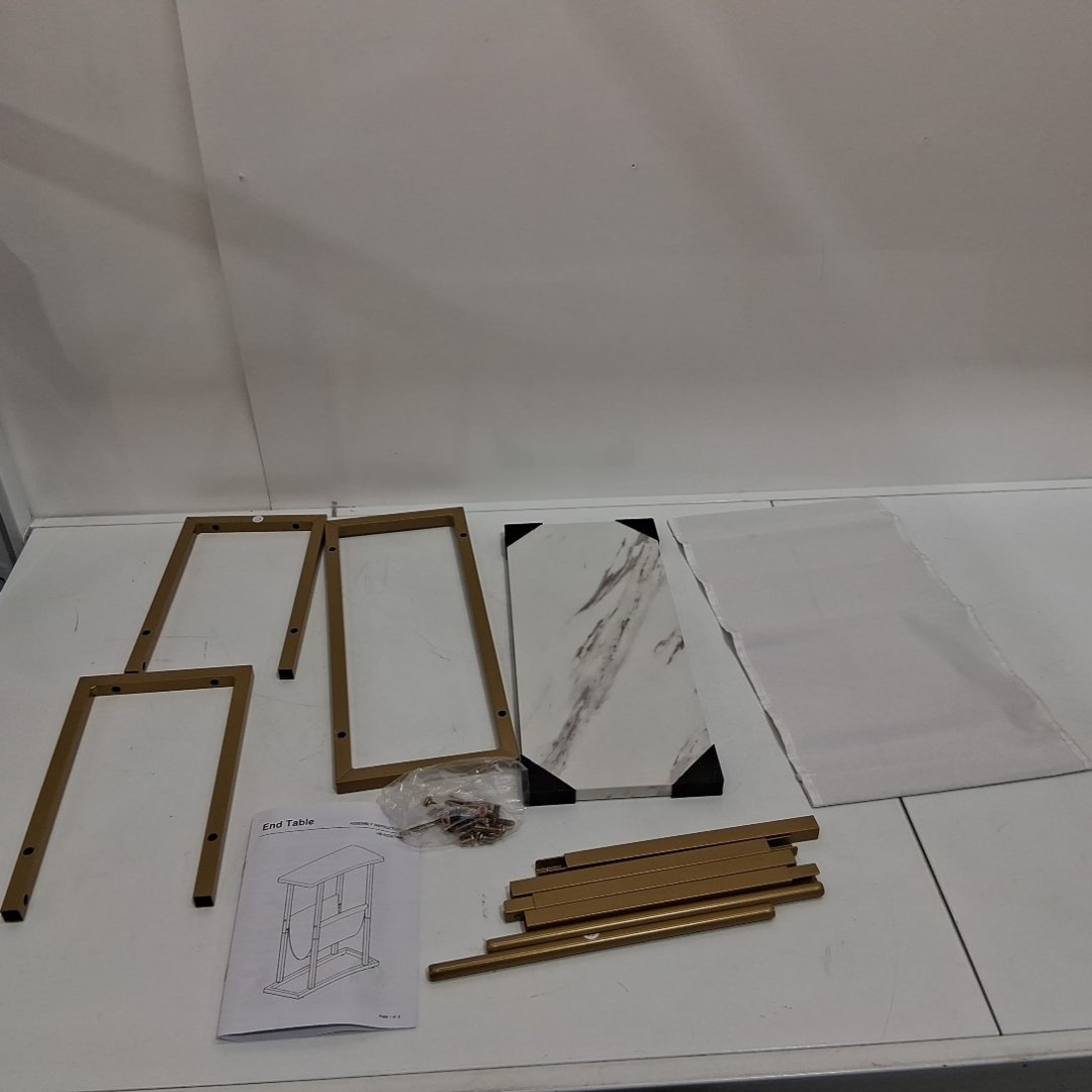 YUSONG WOOD & METAL RETRO NARROW SIDE TABLE/END TABLE WITH MAGAZINE HOLDER - 17.7" - Gold/White (model: lgz-j)