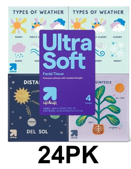 24PK up&up Ultra Soft 3-PLY Facial Tissues - 65 SHEETS EACH PACK