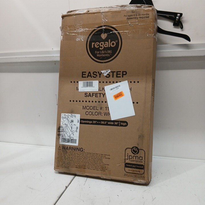 REGALO EASY STEP EXTRA WIDE METAL BABY SAFETY GATE - FITS OPENINGS 29"-38.5" WIDE x 30" HIGH - WHITE (MODEL: 1160DS)