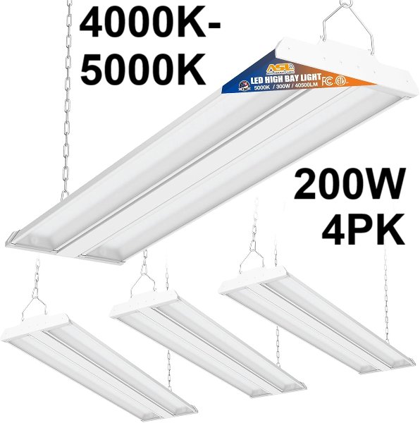 4PK Allsmartlife LED High Bay Lights - 4000K to 5000K - 200W - White (Model: KLHBLFS-200)