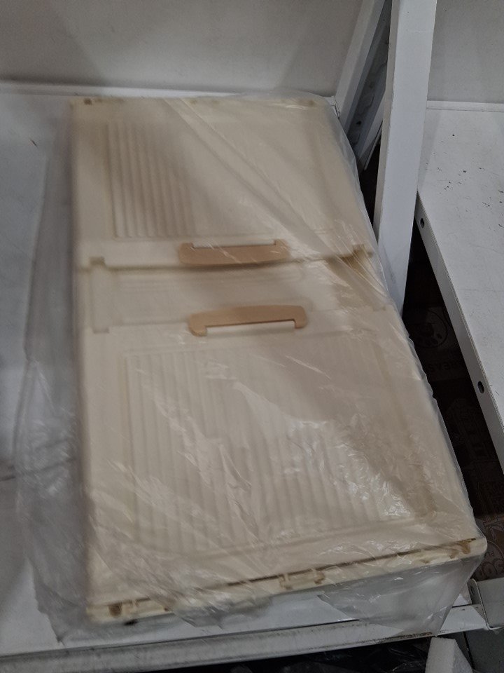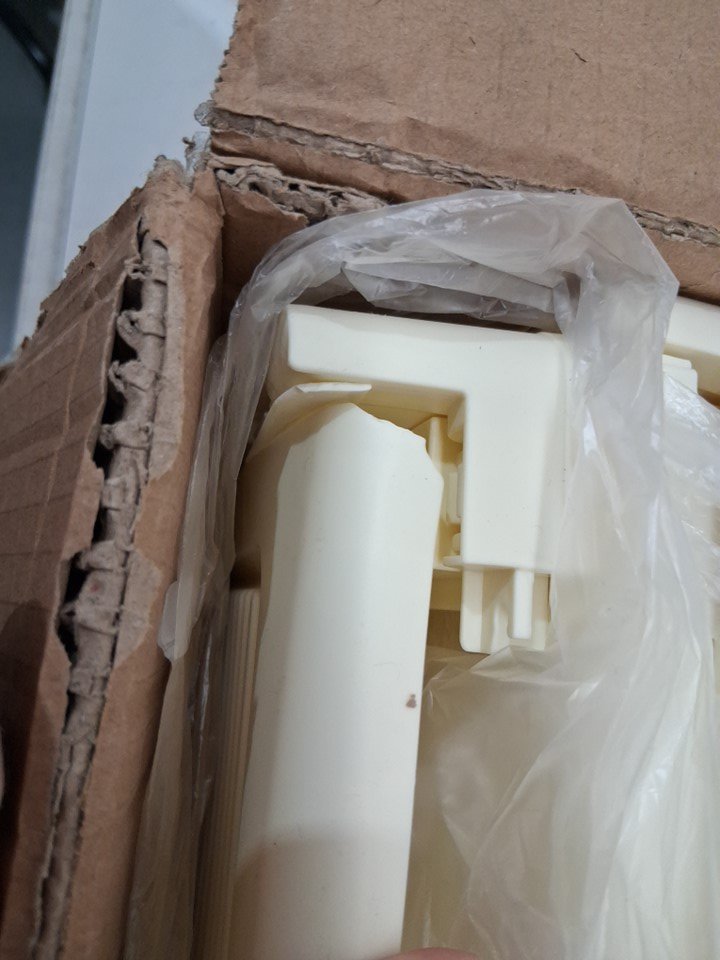 One of the bins appears to have a crack in the corner of it, should not impede function.