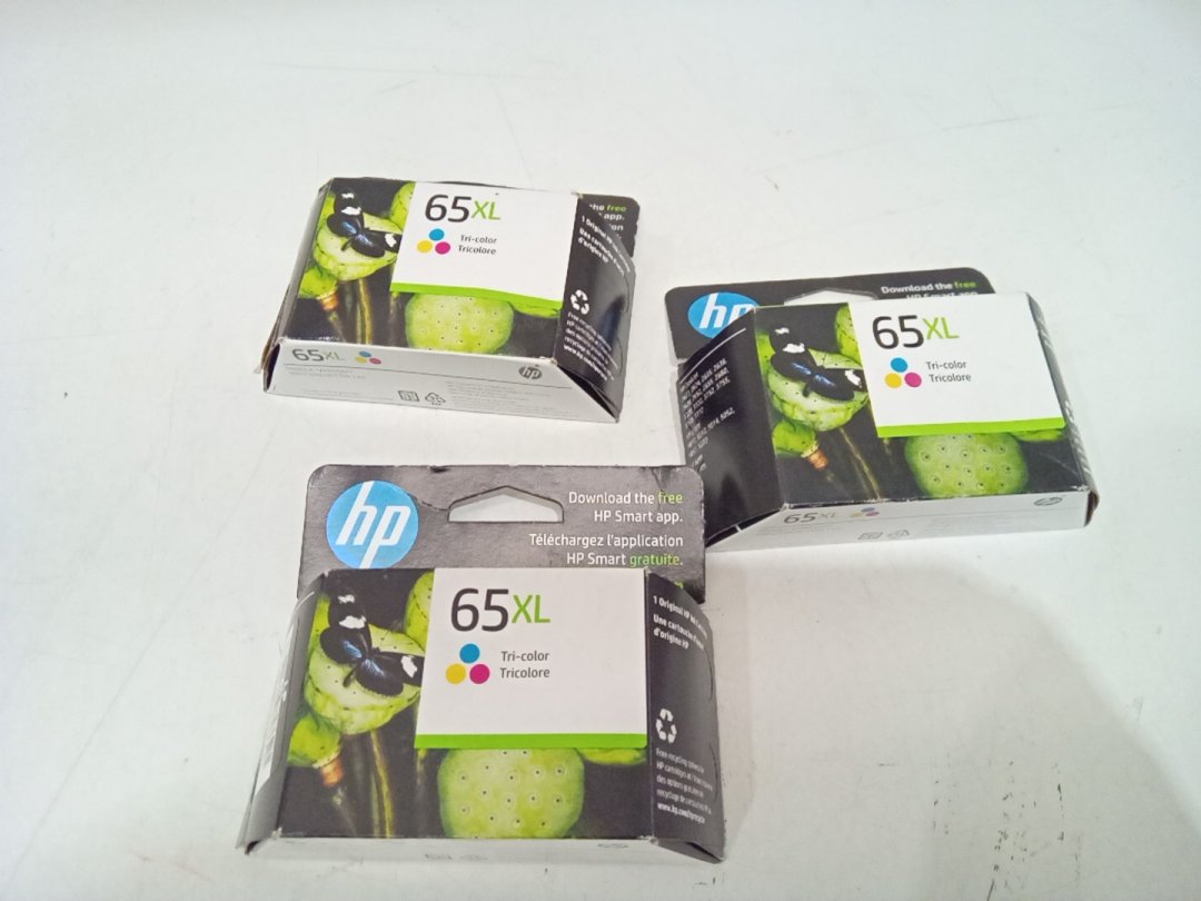 3 HP 65XL Ink Cartridges for Select DeskJet, ENVY, and AMP Printers - Tri-Colour Cyan, Magenta, Yellow (Model: N9K03AN)