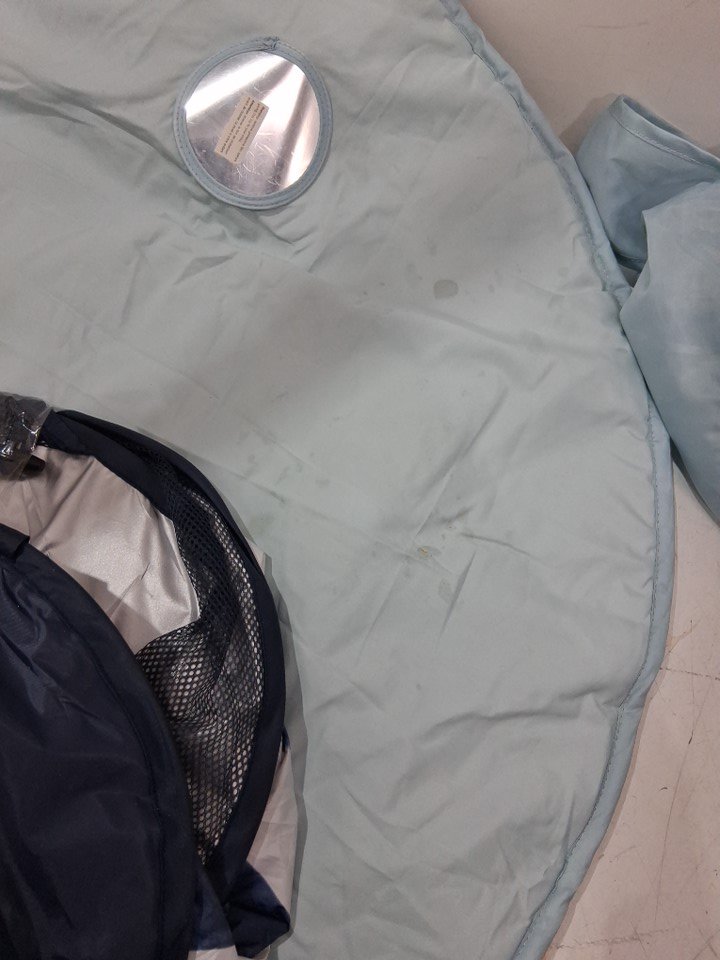 There is sand and dirt on the item and stains on the mat from previous use. Can likely be washed. A few small pieces are missing (see last photo)