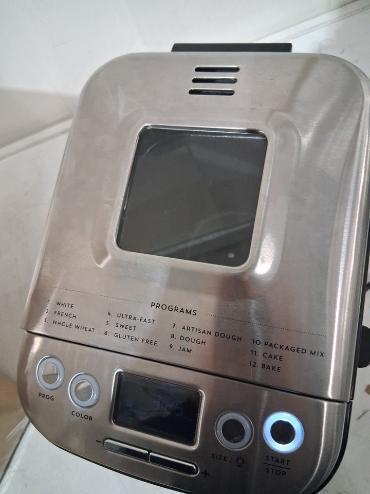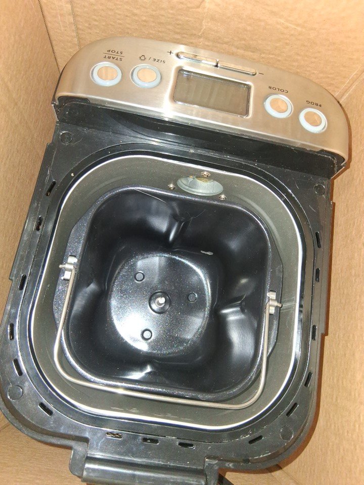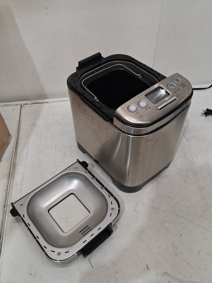 Tested for power and function. Missing kneading paddle, lid detached from unit (See photos).