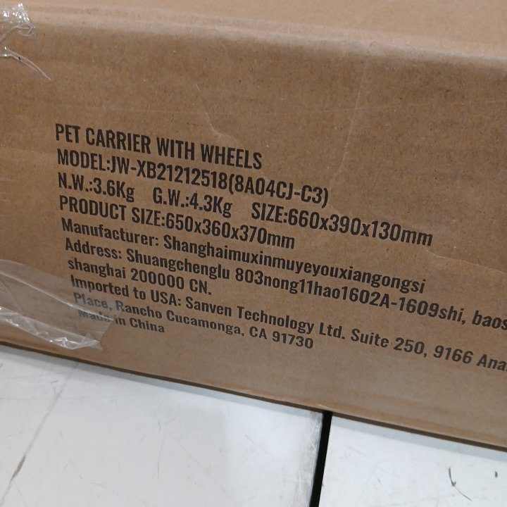 pet Carrier with Wheels and Folding water Bowl - 35lb cap - black (MODEL: JW-XB21212518(8A04CJ-C3))