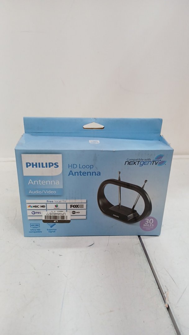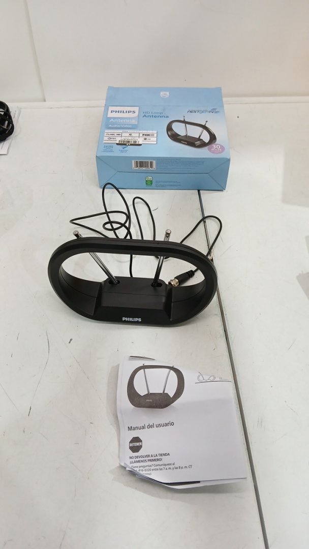 PHILIPS TABLETOP MODERN LOOP RABBIT EAR INDOOR HDTV TELEVISION ANTENNA W/ 15" EXTENDABLE DIPOLES - SMART TV COMPATIBLE - 1080P VHF UHF - 4K READY (MODEL: ‎SDV7114A/27)