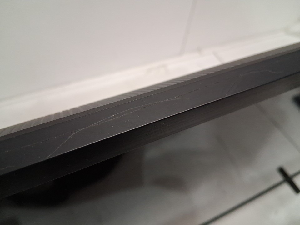 There are some light cracks in the top of the frame - see photos. Outside of this cosmetic damage, there are no apparent issues with the TV or its functions.