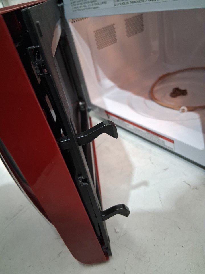 door does not open/close properly, plastic seal is broken on the inside, view in photo