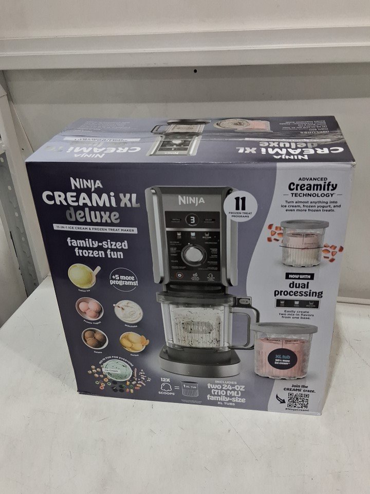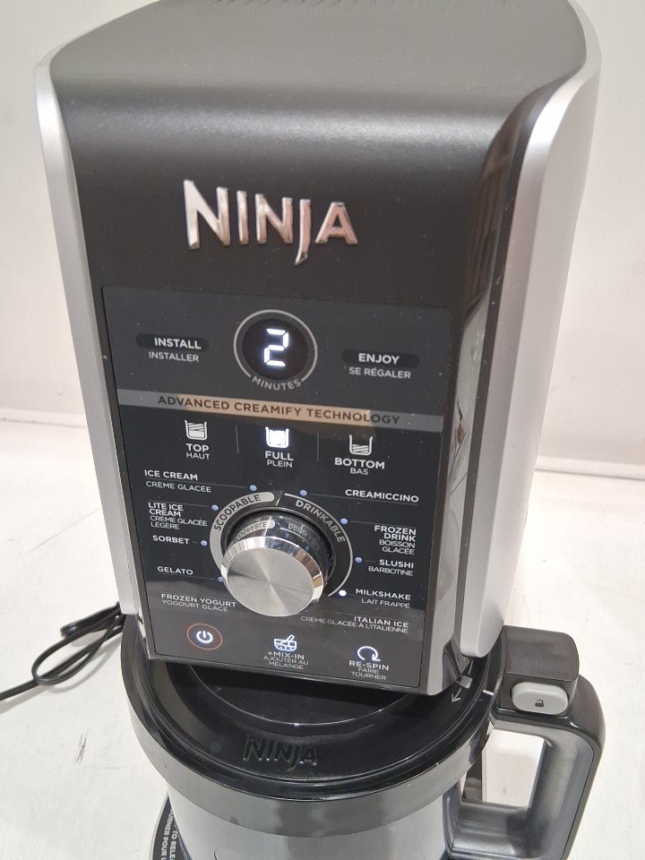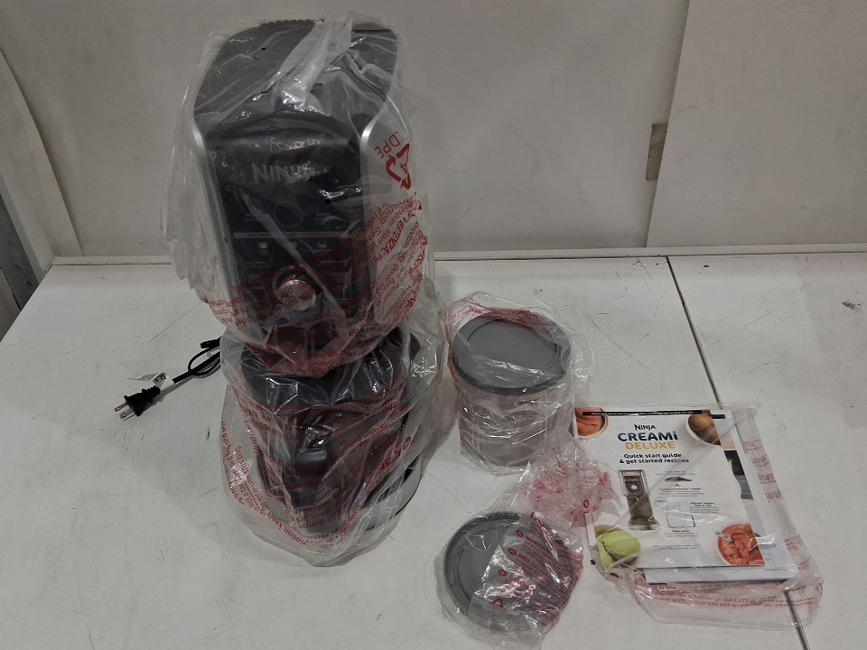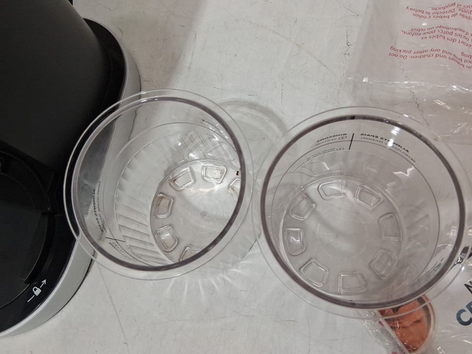 **Tested for power, blade rotation.** Item has minor residue markings in one of the pint containers, in the main container, and around the blade/rotor from previous gentle use, see photos.