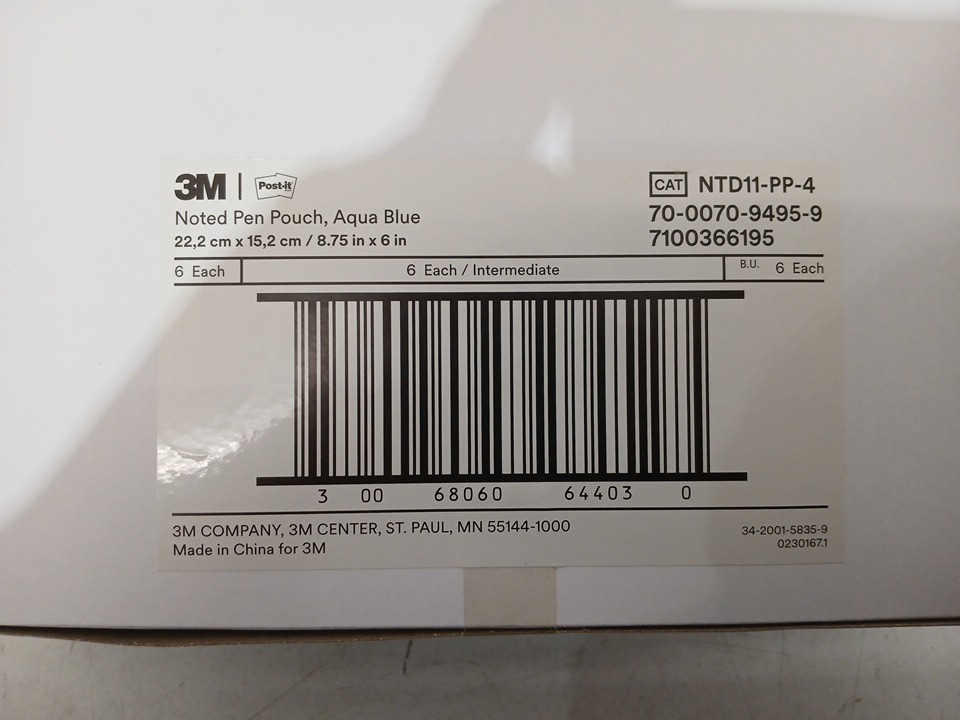 6 NOTED BY POST-IT ZIP-UP PEN POUCH - 8.75"X6" - METALLIC BLUE