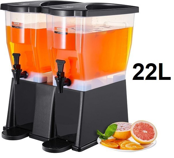 DUAL BEVERAGE DISPENSER STAND WITH LABELS - 22l (11l each) - black/clear (model: jd-bd22l)