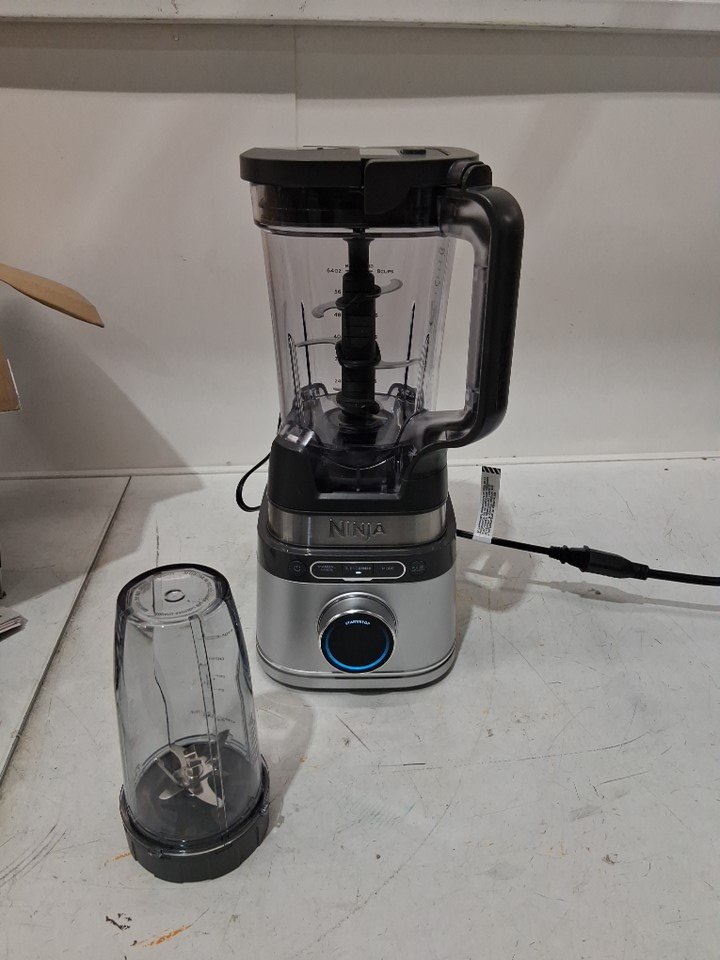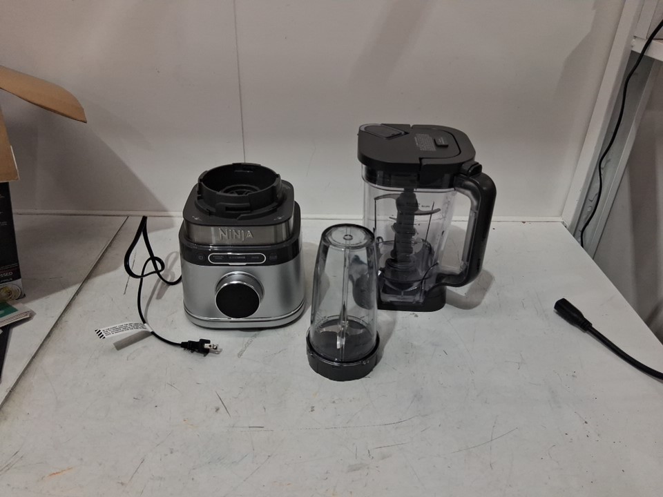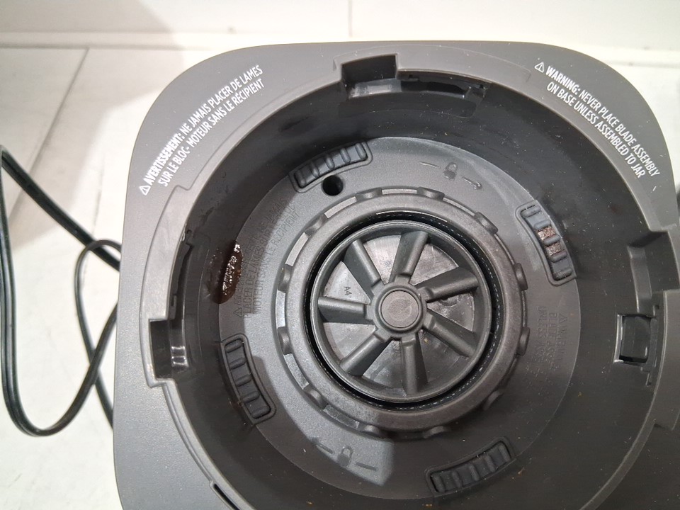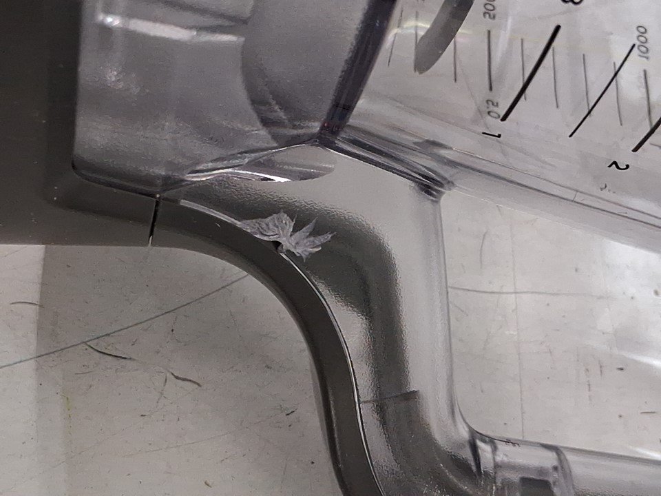 item has food residue where the blender pitcher goes and theres a crack near the bottom of the handle of the main pitcher ( see photos)
