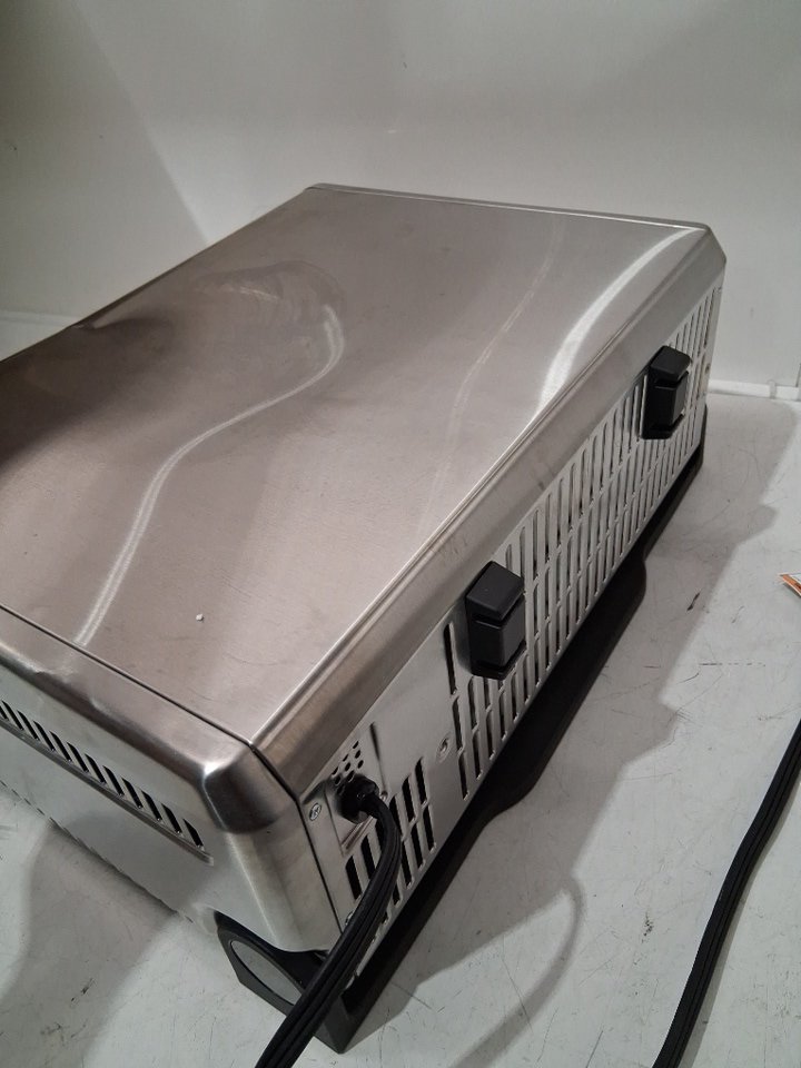 it has a large dent on the top, food stains and residue from previous use are present. tested for power only