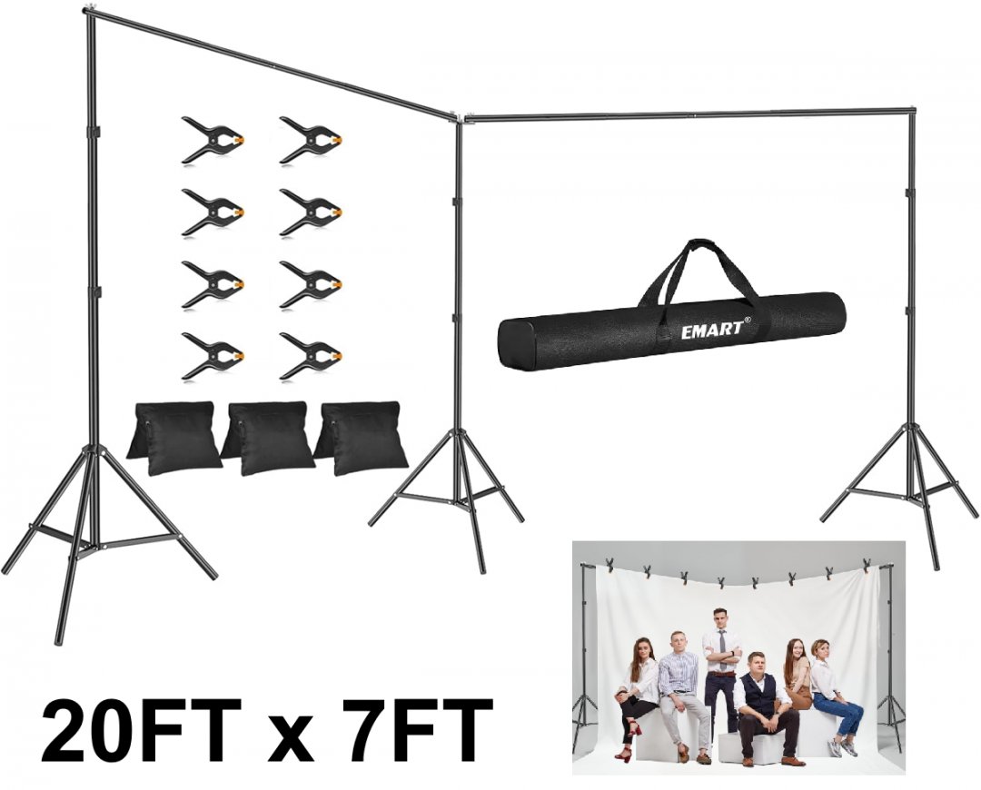 EMART Large Adjustable Pipe Backdrop Stand for photography with accessories and carry bag - 20 x 7ft - black (em-bs2160)