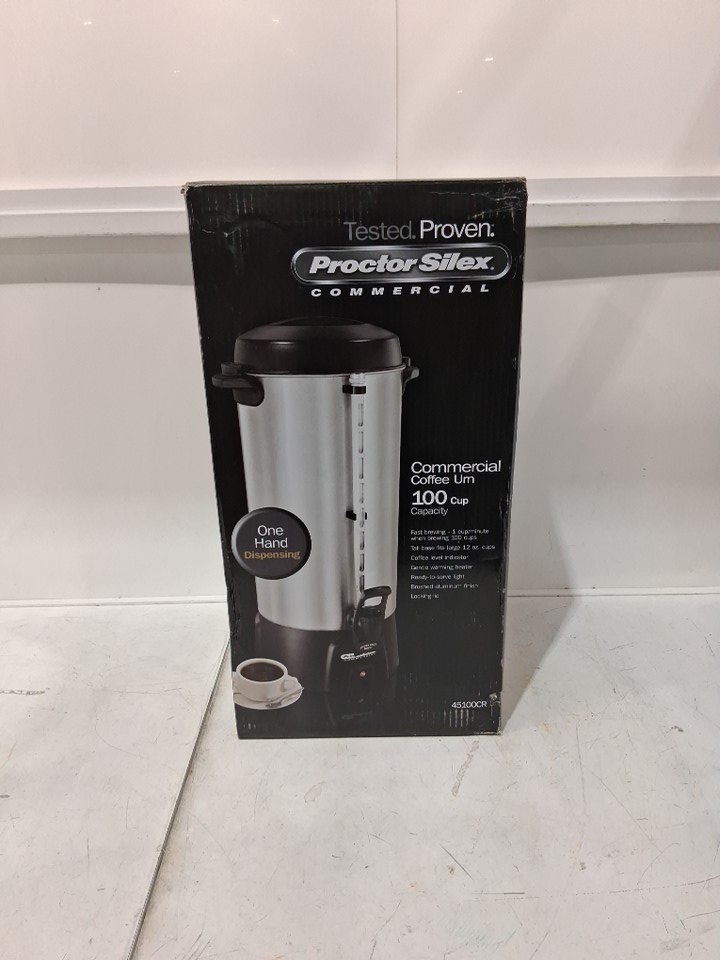 PROCTOR SILEX COMMERCIAL COFFEE URN - 100 CUP CAPACITY - STAINLESS STEEL/BLACK (MODEL: 45100CR)