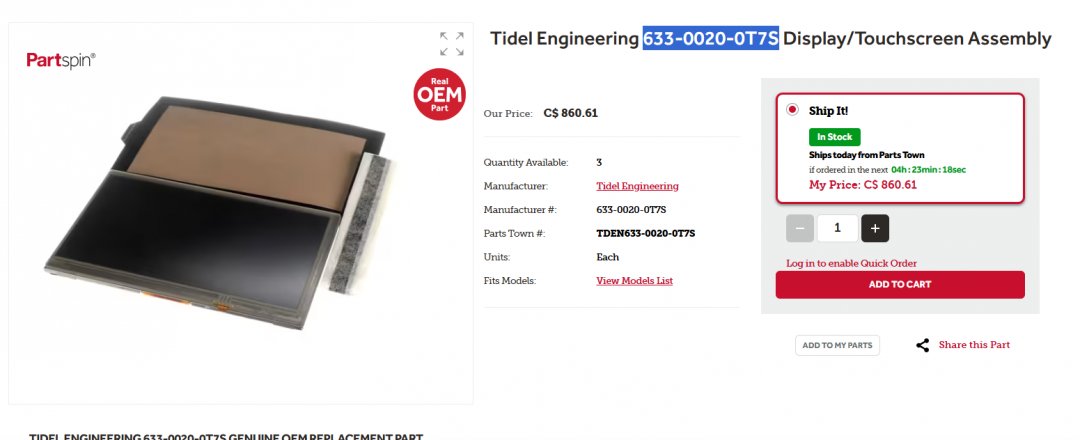 tidel engineering replacement touchscreen display assembly - black - (model: 633-0020-0T7S)