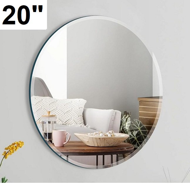Arcus Home Chicago framless Round wall mounted beveled Mirror - 20"