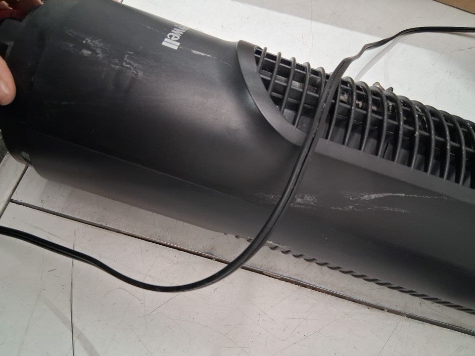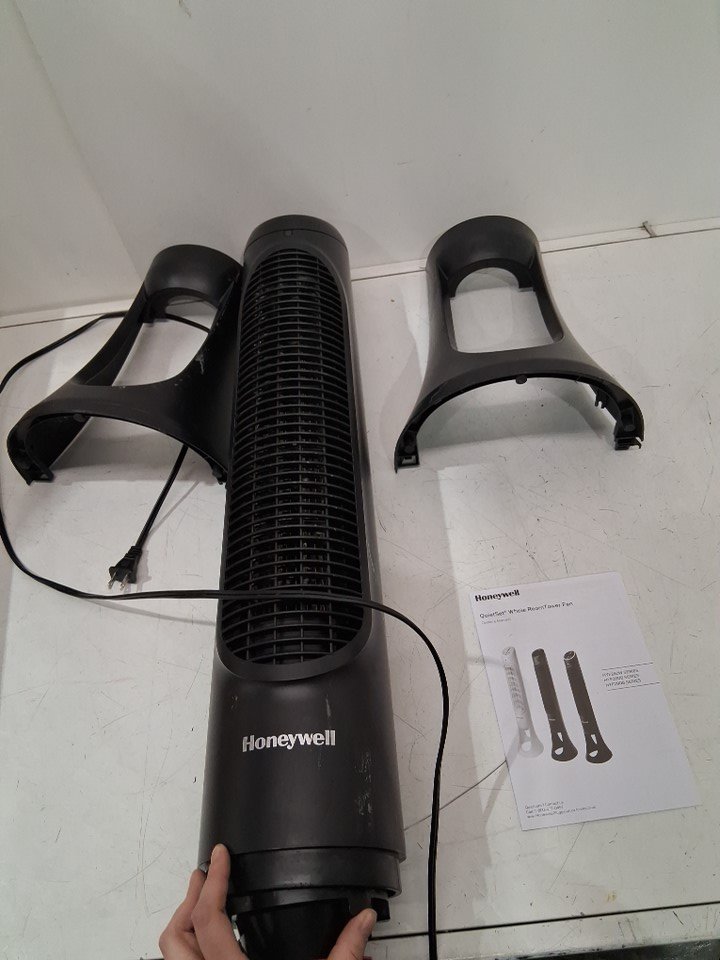 dirt/ marks on fan, bottom twist for base needs to be fixed to insert fan back into base, see photos.