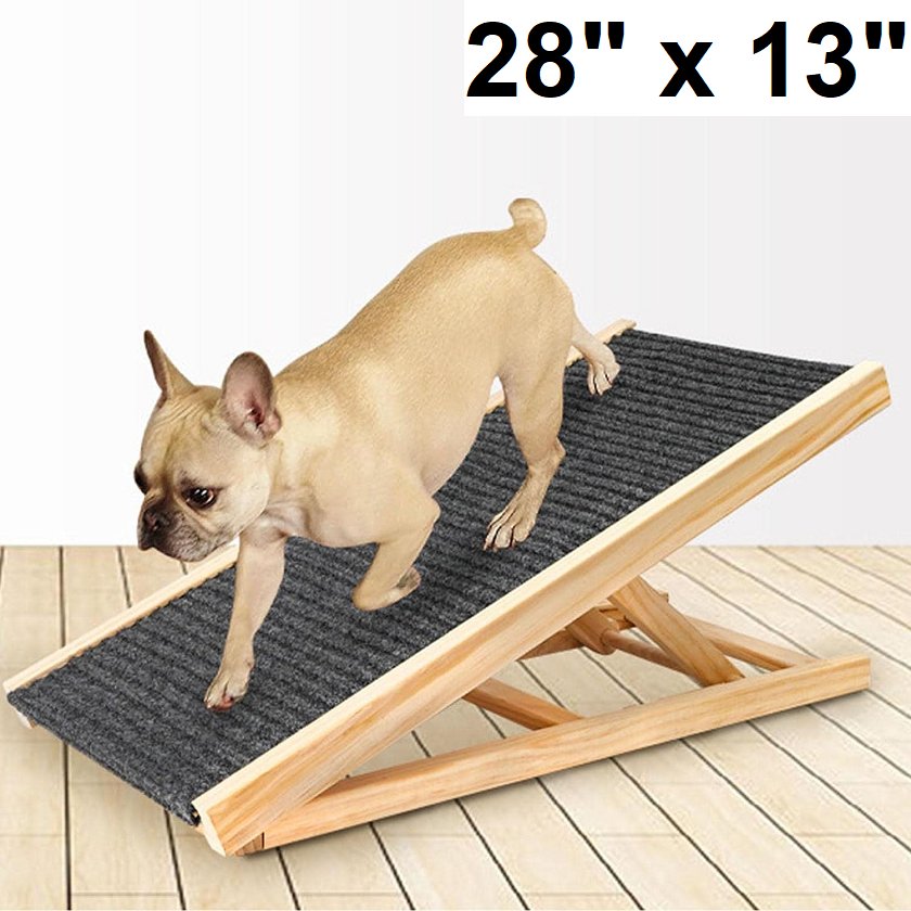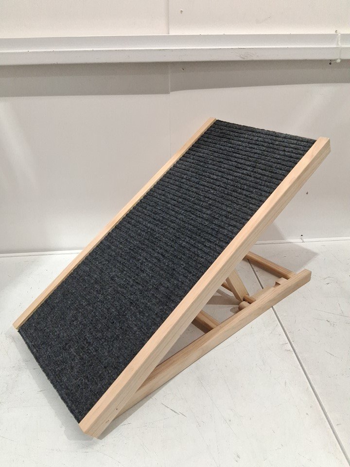 adjustable small pet cat dog ramp - 28" X 13" - up to 16" height - Grey carpet & wood