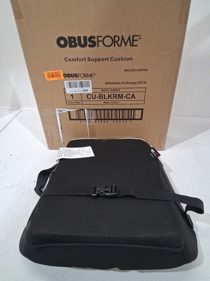 OBUSFORME LUMBAR SUPPORT ERGONOMIC MEMORY FOAM BACK REST WITH DUAL ADJUSTABLE STRAPS - BLACK (MODEL: cu-blkrm-ca)