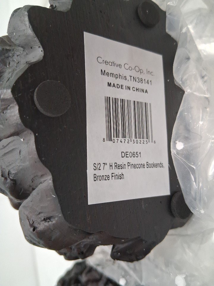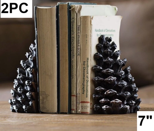 2PC Pinecone Shaped Resin Bookends - 7" - BROWN (MODEL: DE0651)